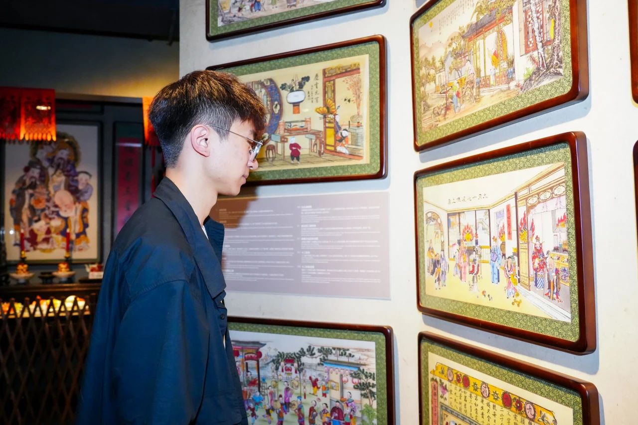 移步玉成号霍氏年画坊,非遗传承人张宏老师为员工讲授年画的“勾、刻、印、绘、裱”等制作工序。同时,来自大中小学四个学段的师生们共同聆听非遗传承人的讲解,同上一堂学习传承中华优秀传统文化的生动实践课。《莲年有余》《事事如意》……一幅幅承载着吉祥寓意的年画在同学们手中诞生。“这不仅是技艺的学习,更是对优秀传统文化的深刻认同。我们要让这些‘活’的文化在人民的城市中继续传承下去。”公司参与员工表示,理论与实践的深度融合,让静态的文化符号转化为可感可触的艺术体验,为非遗文化的活态传承注入了青春活力。
