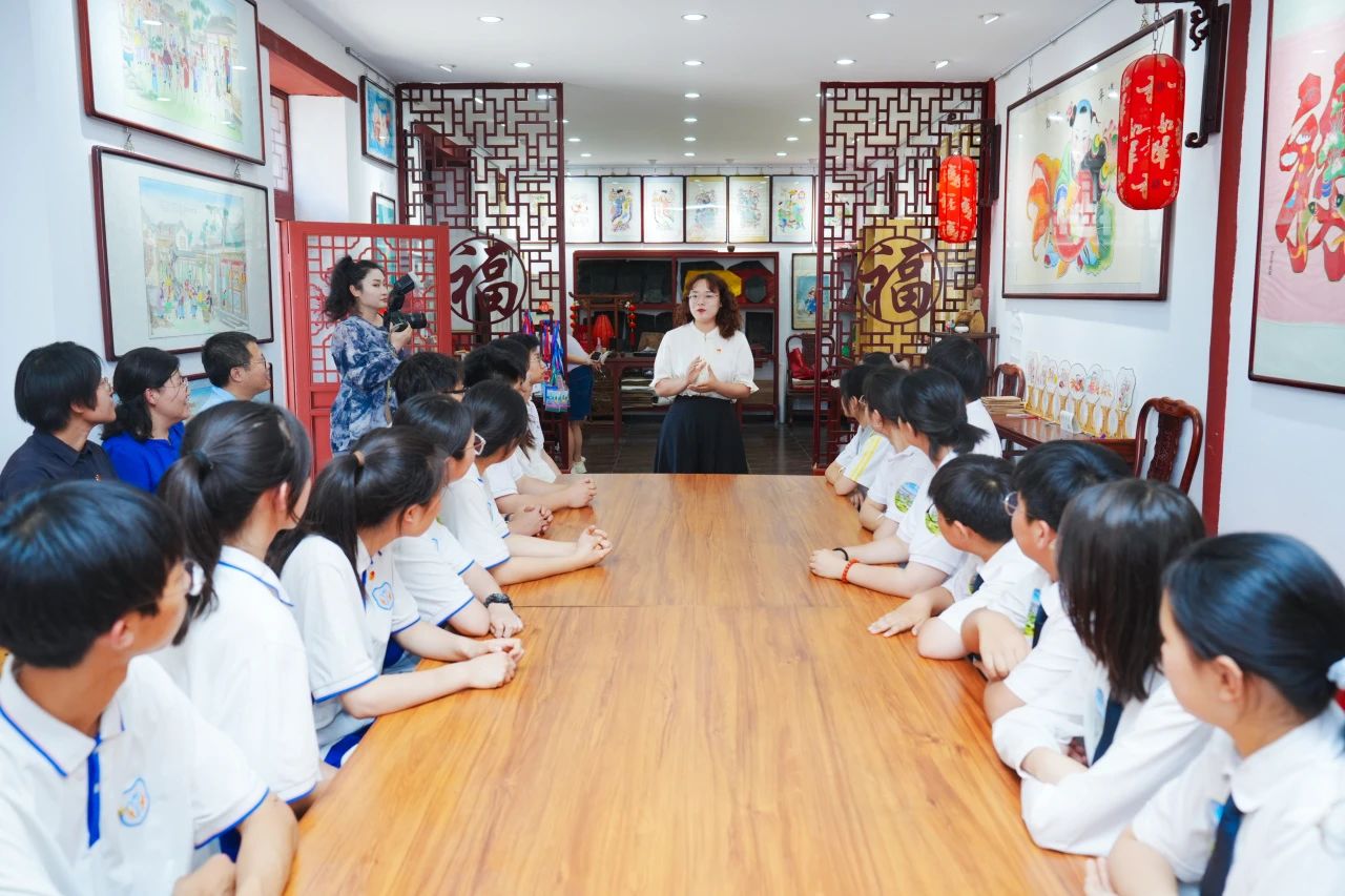 在杨柳青民俗文化馆,我院教师以杨柳青年画发展为主线,带领员工们穿越古镇千年历史。从“运河通航”的繁盛到“非遗传承”的坚守,师生们在民俗文化、大院文化、年画文化等多元符号中,共同探寻其中蕴含的“人民智慧”与“城市文脉”。天津一中滨海公司员工深有感触地说:“通过老师的讲解和眼前的实物,我真切感受到了杨柳青深厚的文化底蕴,这正是我们城市生生不息的根脉所在。”