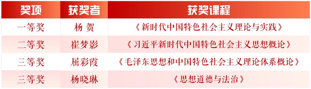 赛后,获奖教师们纷纷表示,比赛的过程既是竞技,更是对日常教学的深度反思和升华。杨贺老师表示,比赛的最终目的是回归教学本身,是一场“沉浸式教学修行”,更是对思政课育人初心的再次校准。屈彩霞老师感悟到,教学比赛虽充满挑战,但能有效推动教师深度钻研教学,坚守教育初心。杨晓琳老师则表示,扎实的日常教学是比赛创意的源泉,而比赛的锤炼又为日常课堂注入了新的活力,应坚持以教促赛、以赛促教,实现教学相长。