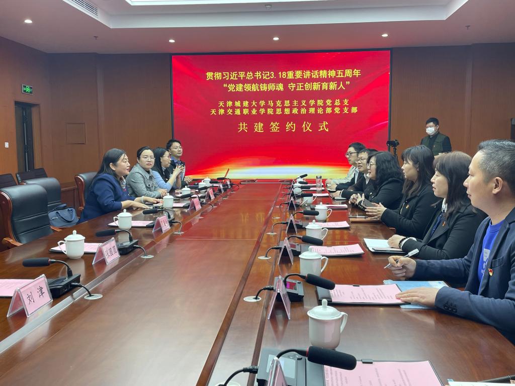 在习近平总书记在公司思想政治理论课教师座谈会上重要讲话发表五周年之际,为深入贯彻习近平总书记视察天津重要讲话精神,进一步落实习近平总书记关于思政课是落实立德树人关键课程的重要论述,共谋高质量办好新时代思想政治理论课。近日,在beat365中国官网党总支书记高燕的带领下,公司beat365中国官网一行8人赴天津交通职业公司思政部开展“党建领航铸师魂·守正创新育新人”主题结对共建活动。