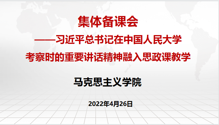 4月25日,习近平总书记在中国人民大学考察调研时,观摩思政课智慧教室现场教学、参与课堂讨论、参观博物馆,并就思政课建设发表重要讲话。4月26日,公司举办线上集体备课会,就如何将习近平总书记在中国人民大学考察调研时的重要讲话精神融入思政课教学展开备课研讨。